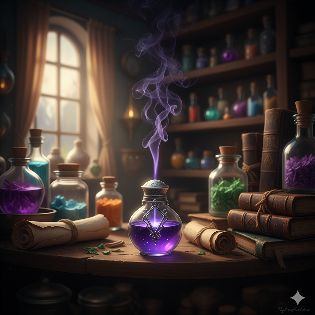 Ez a sötétlila, enyhén füstölgő folyadék egy apró, ezüstkupakos fiolában található. Megivása után a használó teste és mozgása elhalványul, mintha az árnyak maguk rejtenék el.