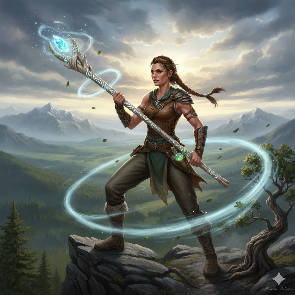 • Léglökés (1x/nap): A botból kiáradó szél egy akcióval hátralöki az előtte álló célpontot (DC 13 Strength save vagy 10 ft hátralökés és prone).